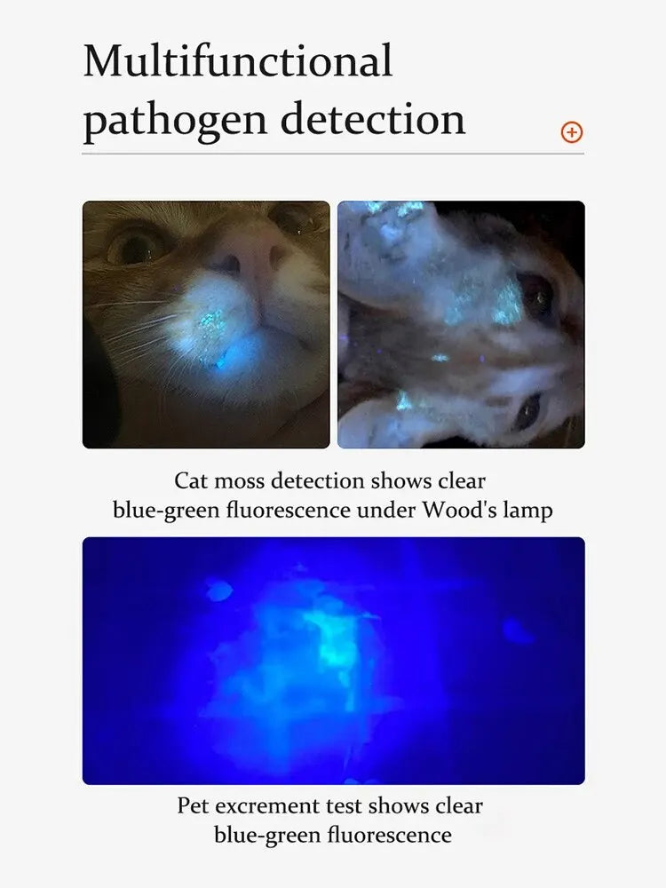 Professional detection light: The lamp specially designed for detecting cat Ringworm can easily detect whether your cat has cat moss. Built-in lithium battery + charging indicator, USB fast direct charging. Strong compatibility, fast charging, convenient, safe and practical Convenient storage: It is very compact, can be carried in a pocket, and has a waterproof design.